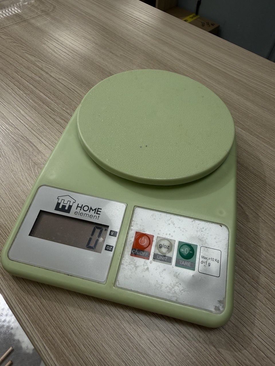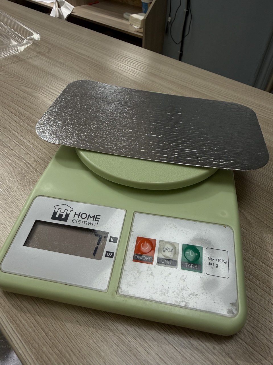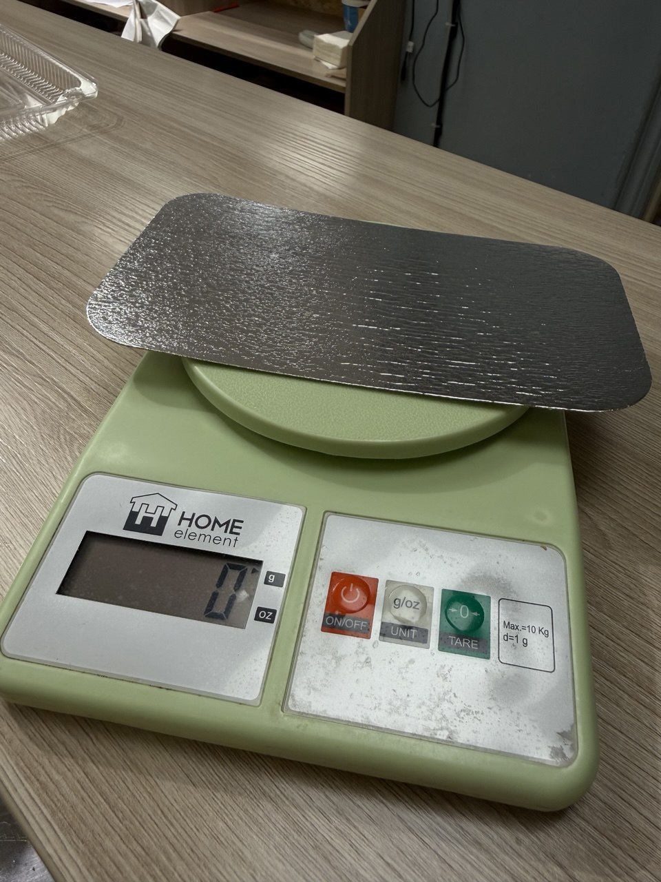 2.      Положи на весы на тарелку или любую другую посуду, на которую потом нужно будет положить роллы. Сфотографируй так, чтобы был виден вес посуды. Как на левой фотографии. Затем "затарьте" весы, нажав кнопку "тара". Значение с тарелкой должно ровняться нулю, пример на правой фотографии.