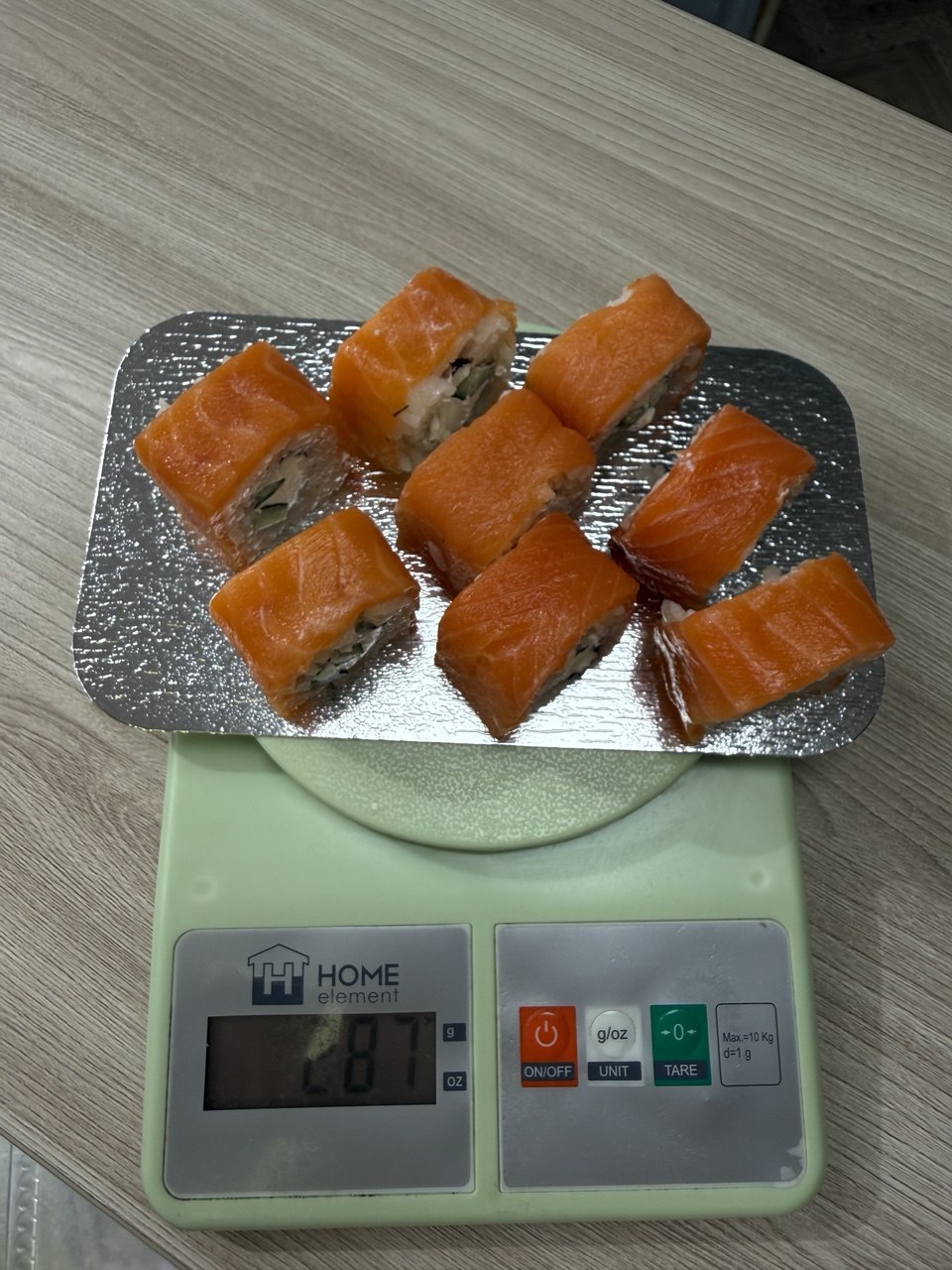3.      Положи каждый вид роллов по отдельности на тарелку и сфотографируй с нескольких ракурсов (прямо, слева, справа, сверху). На фотографии должен отображаться вес роллов с посудой. Вот так: