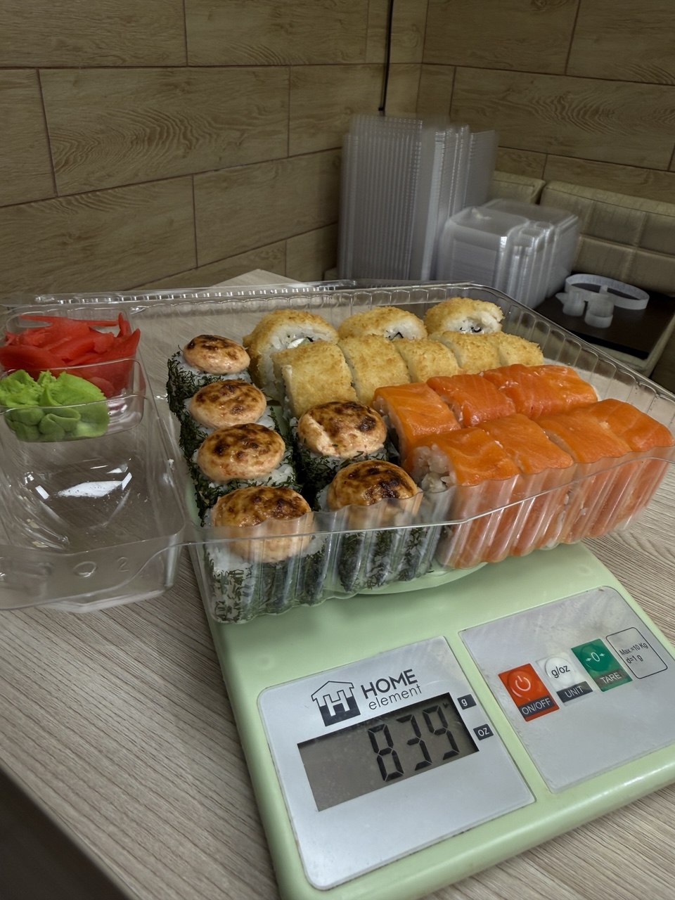 5.      И последнее, пожалуйста, взвесь весь заказ, со всеми роллами, имбирем и васаби.
